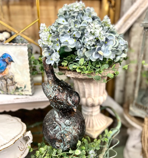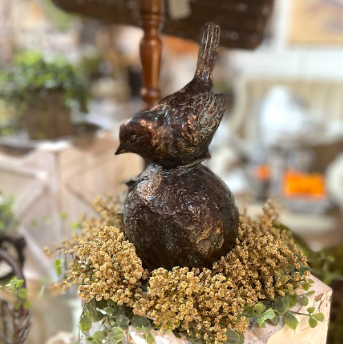 Add a touch of nature to your home with the Bird Orb Bronze. Crafted from durable resin, this unique piece of home decor is perfect for adding a natural touch to any room. Whether it's spring, summer, fall, or winter, this ornamental piece will bring joy to your home all year round.