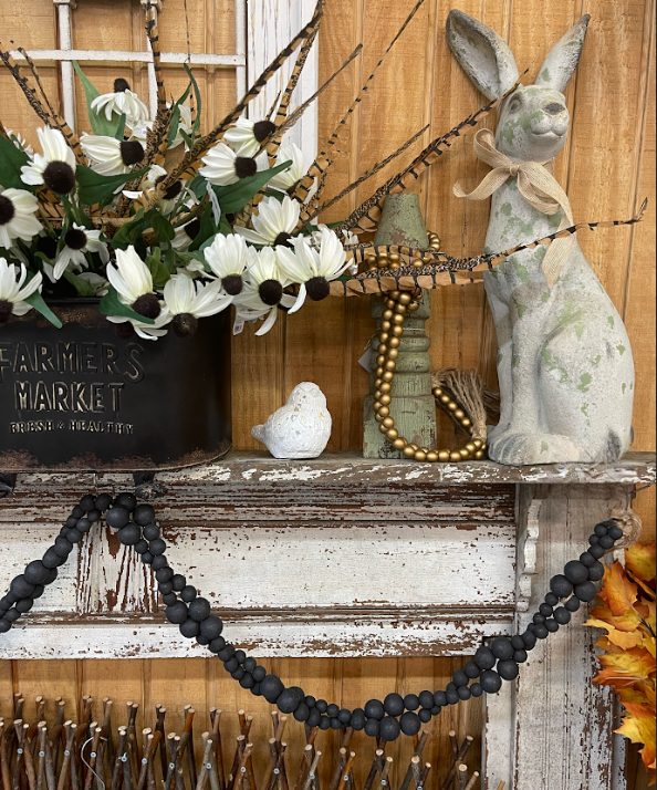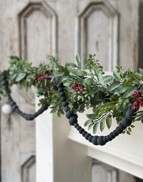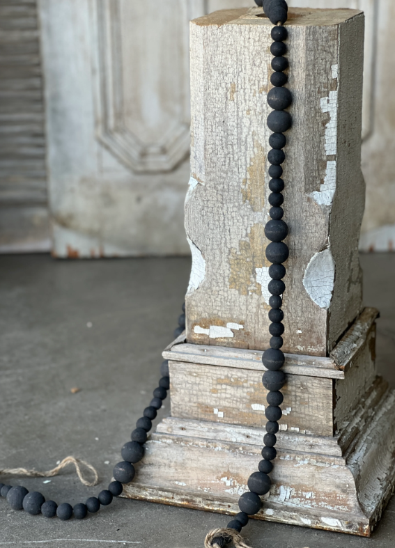 Discover Cadence Beads in Black, a versatile garland featuring different sized beads. Perfect for enhancing your decor in any season, including Christmas, fall, and everyday settings.