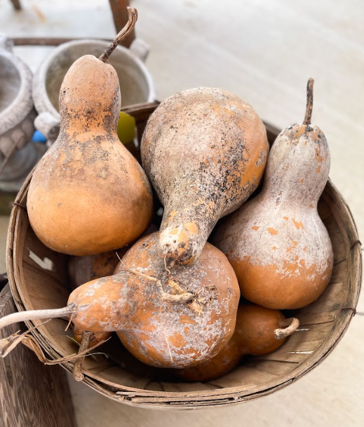 All gourds will vary in shape and size but will have a similar shape to the ones pictured. Single gourd.