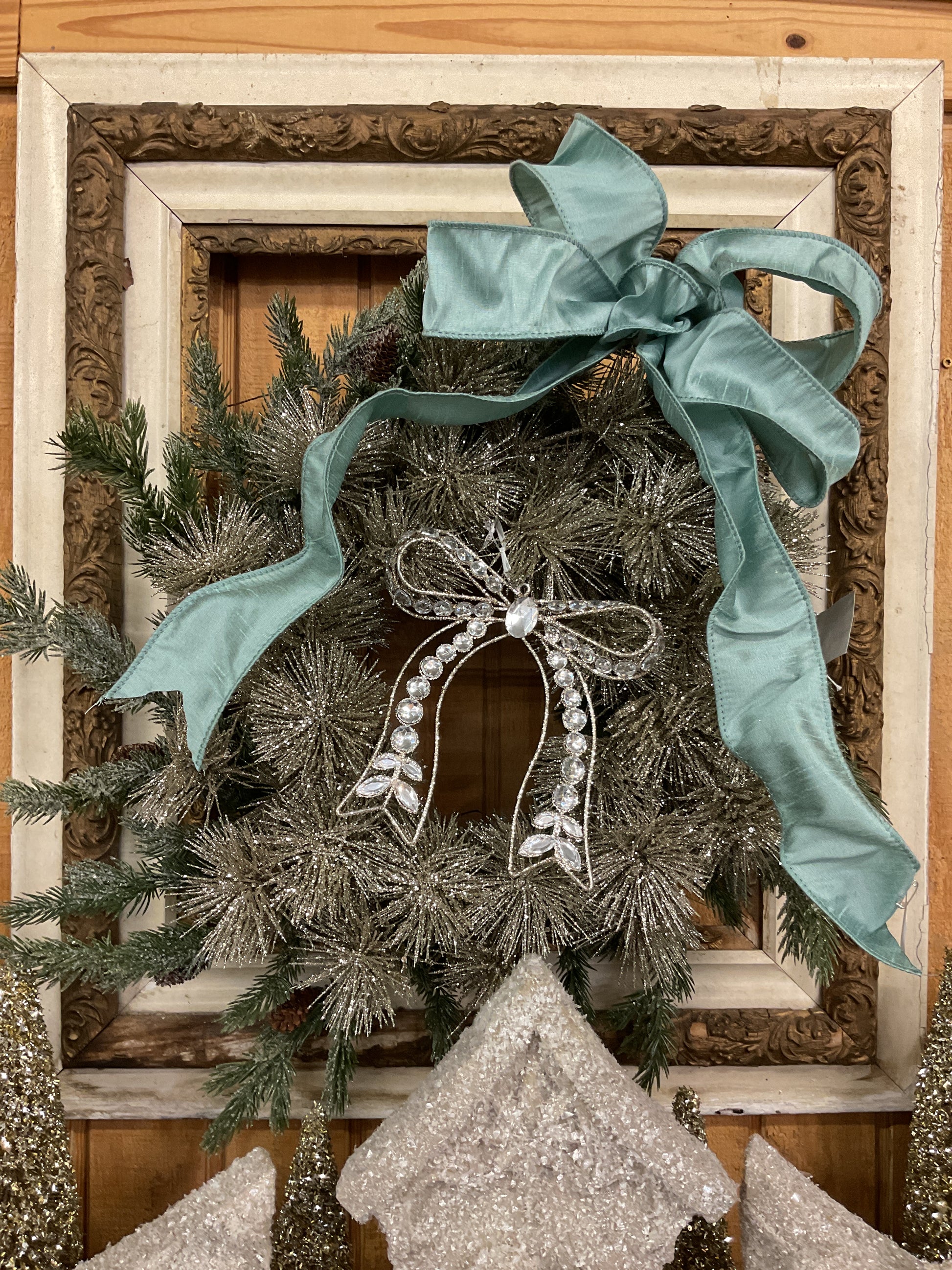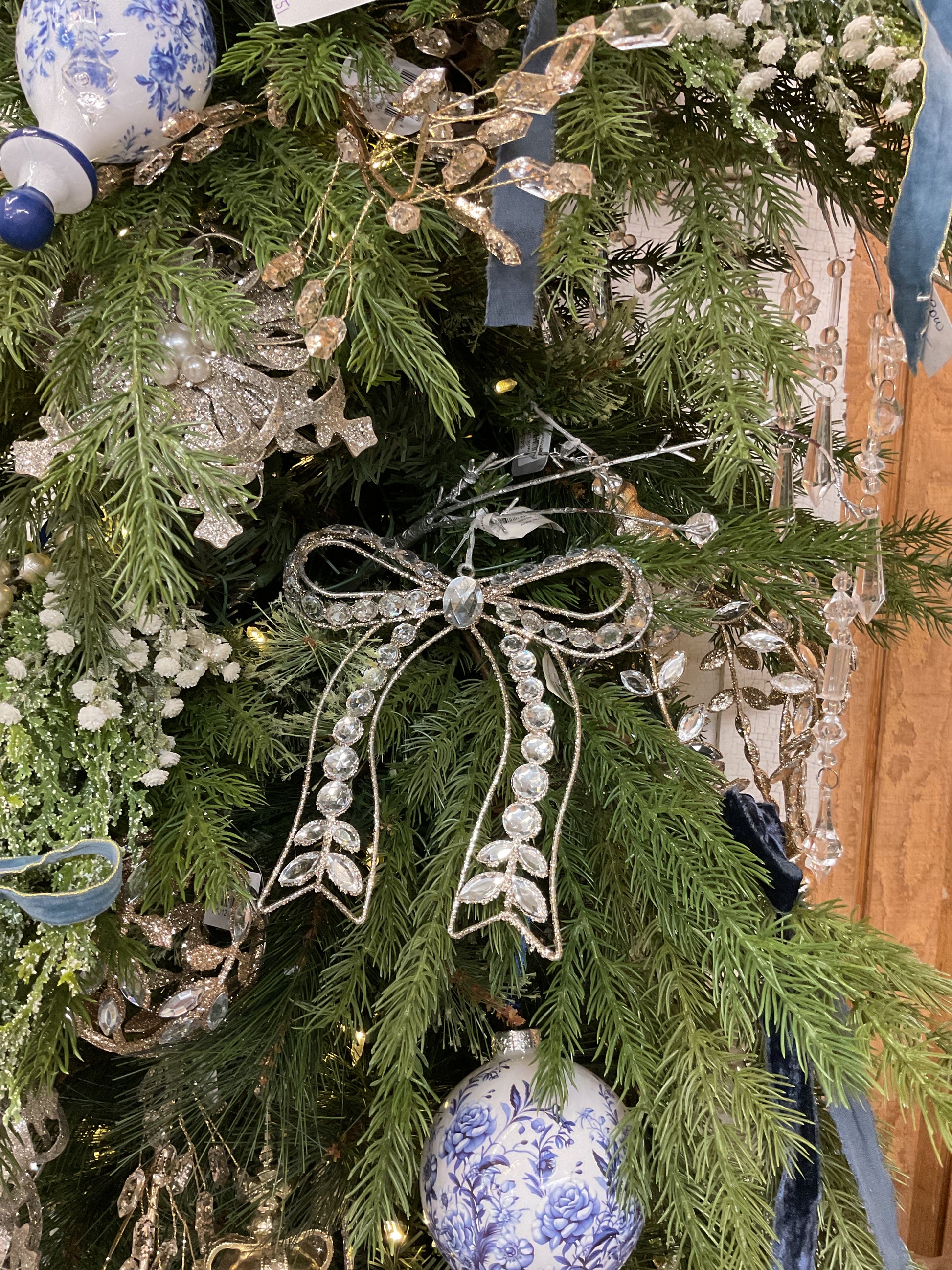 Elevate your holiday decor with the Jewel Bow Ornament, a stunning accent inspired by French Chateau elegance. Its shimmering details add a touch of refined charm to your Christmas tree, creating a festive atmosphere filled with sophistication and sparkle. Perfect for those seeking to blend timeless style with holiday cheer.
