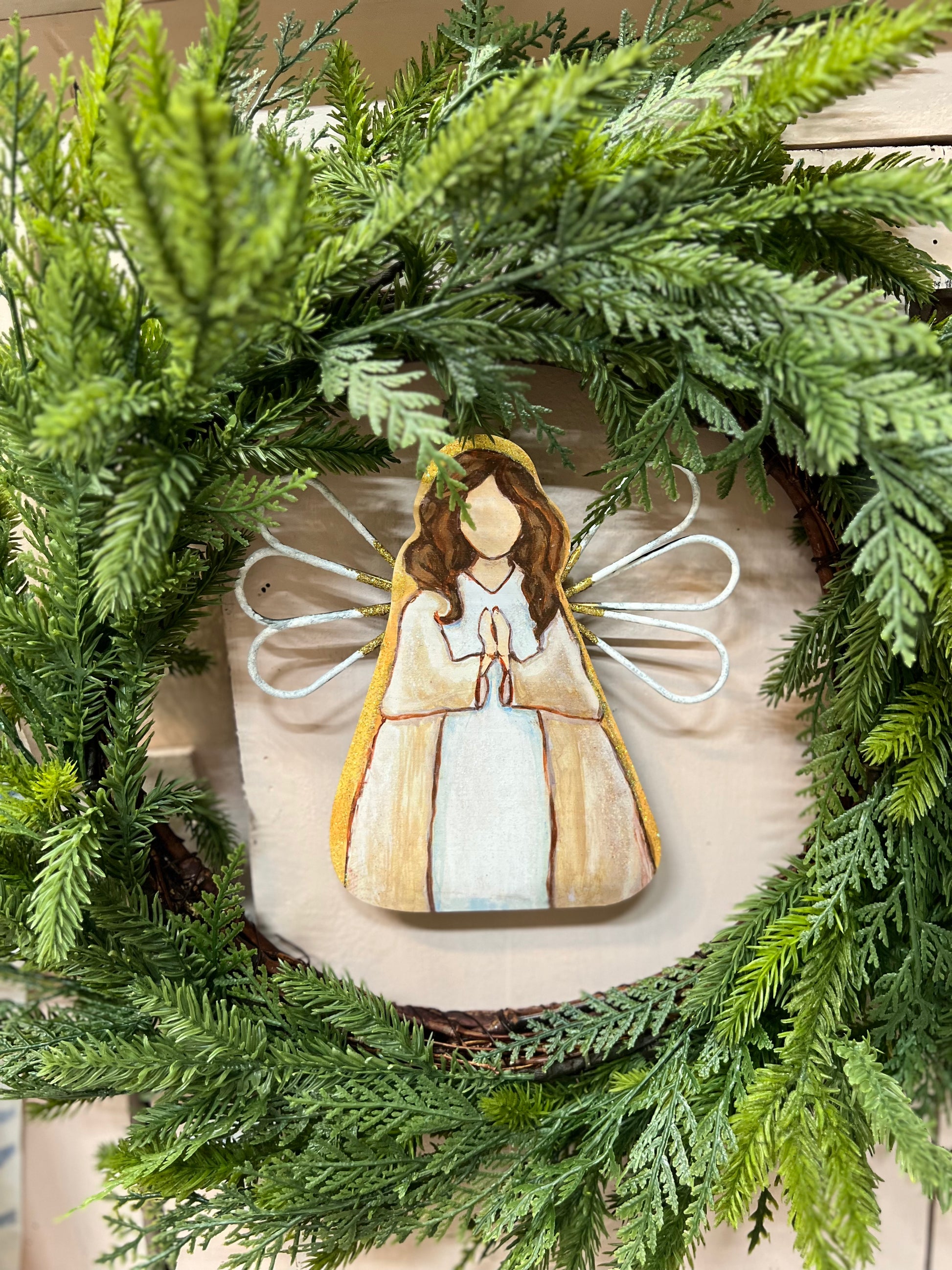 Perfect for doors, walls, or mantels, the wreath is adorned with subtle detailing to enhance its timeless appeal, such as hints of frosted greenery or mini pinecones. Its versatile design complements both traditional and modern Christmas themes, making it a beautiful addition to your seasonal decorations.