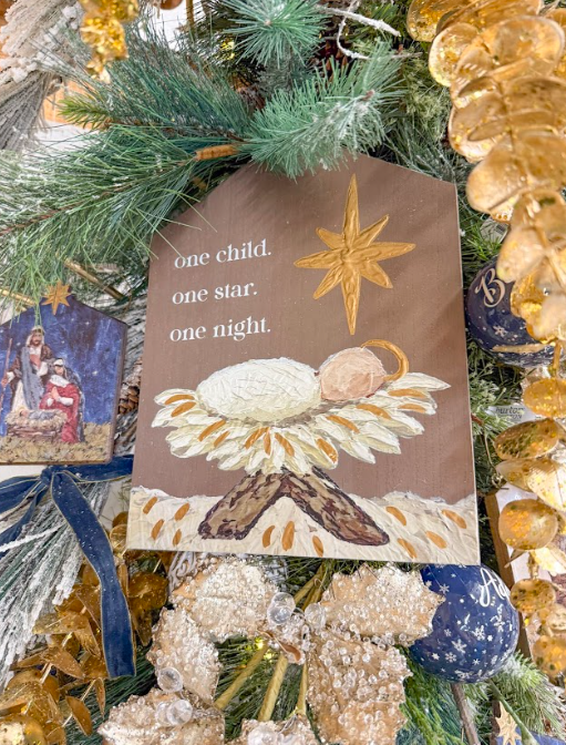 Add a heartfelt touch to your holiday decorations with the One Child Hanging Sign. Perfect for a neutral Christmas decor scheme, this charming nativity sign highlights the true meaning of the season while blending seamlessly with any style. Easy to hang and subtly designed, it brings warmth and spirit to your space without overwhelming your existing decor. Celebrate the joy of the season with a timeless piece that invites reflection and peace.