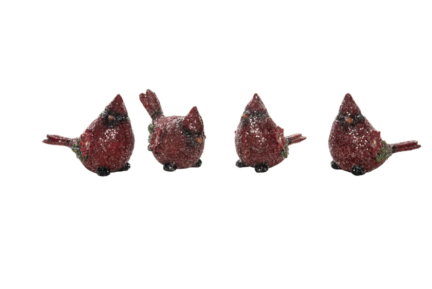 Bring a touch of winter magic to your décor with this Small Iced Cardinal figurine collection. Featuring four unique poses, each cardinal is delicately glittered to capture the shimmering beauty of iced branches. Perfect for adding a festive and elegant charm to any room or holiday display. These detailed figurines invite you to celebrate the season with graceful wildlife artistry.