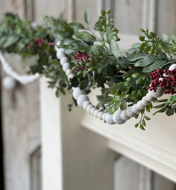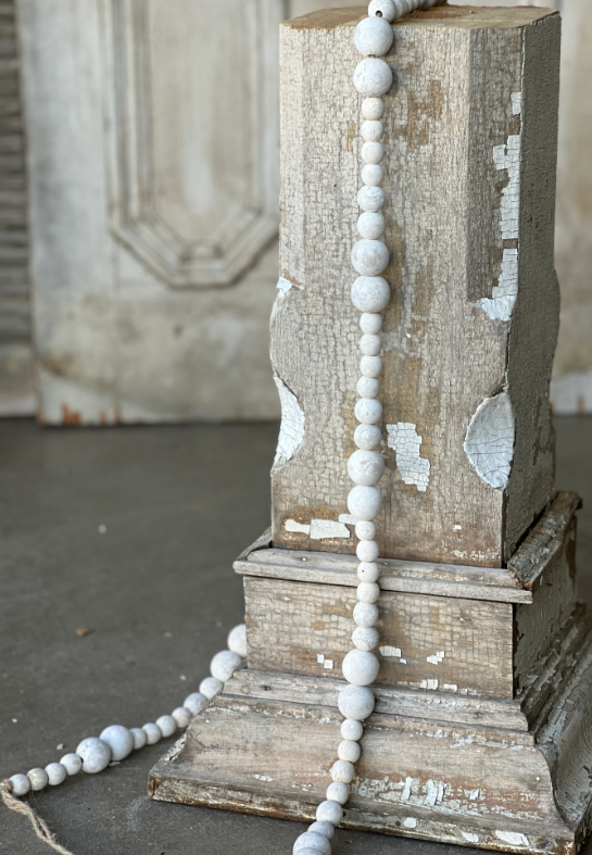 Discover Cadence Beads in White, a versatile garland featuring different sized beads. Perfect for enhancing your decor in any season, including Christmas, fall, and everyday settings.