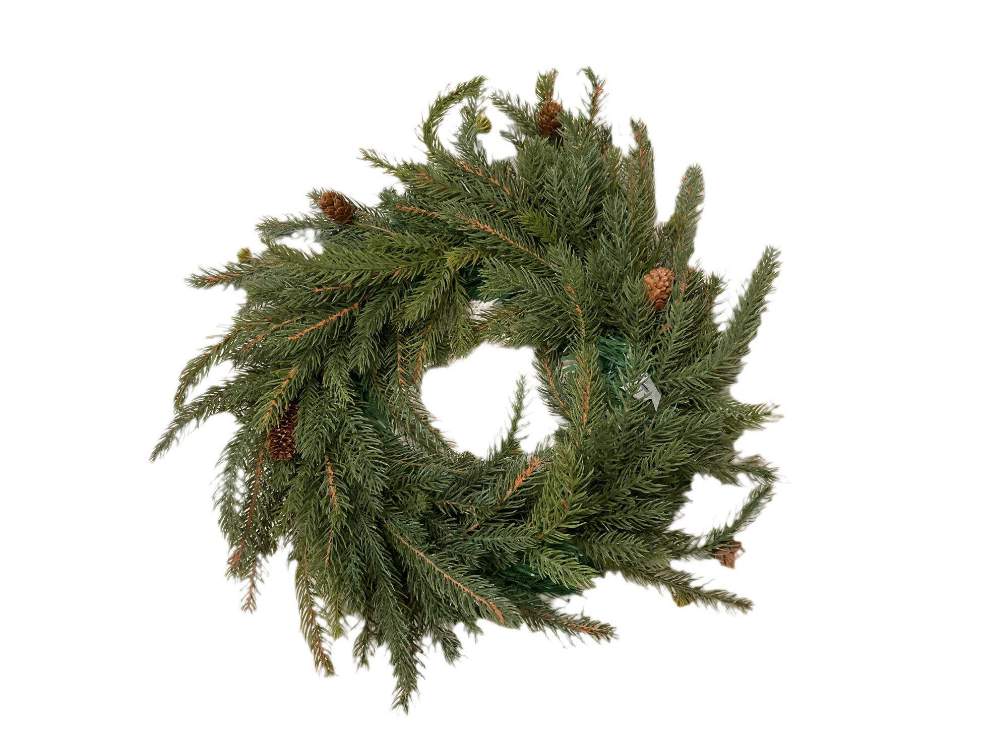 Bring festive charm to your home with the White Spruce Wreath. Perfect for hanging on doors, adorning the base of a cloche, or collaring a pot, it effortlessly enhances any space. Customize your look by adding bells, roundtops, or signs to create a personalized holiday statement that welcomes warmth and joy throughout the season.
