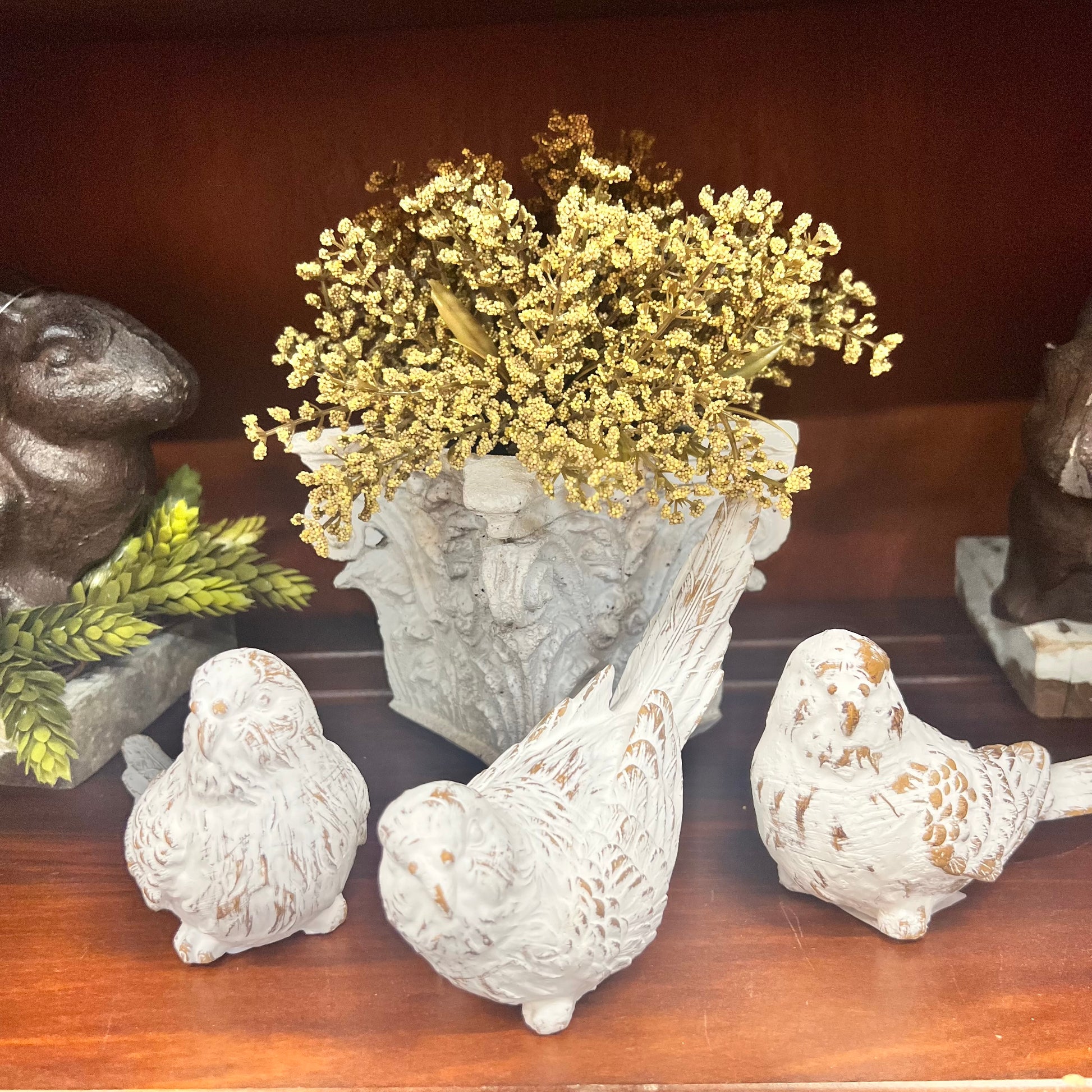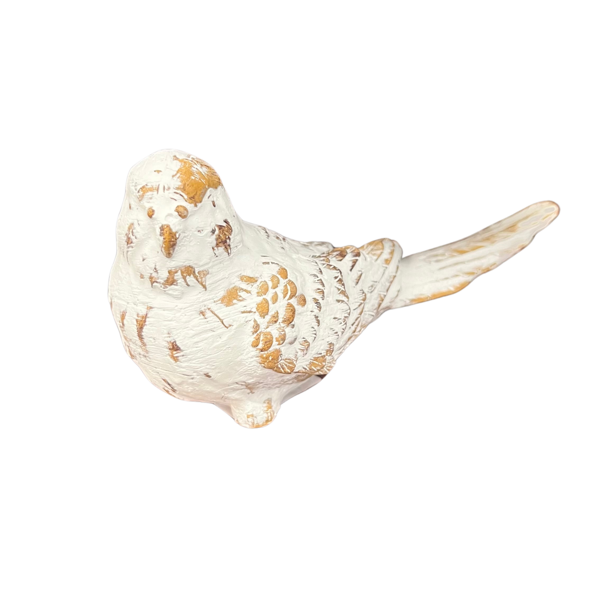Enhance your décor with our exquisite whitewashed bird figurines, available in three charming poses. Each figurine measures 6" x 6" x 3.75", adding a touch of elegance to any space. Shop now and bring a delightful ambiance to your home.